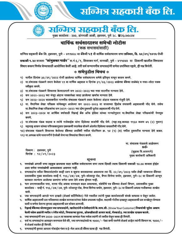 आपली बँक... सन्मित्र बँक !